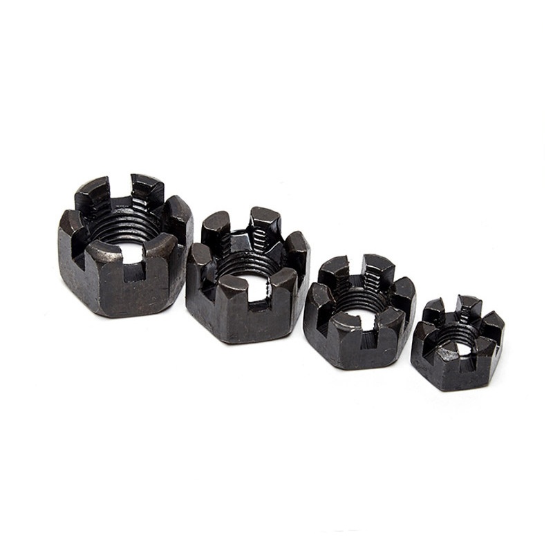 Hexagon Slotted Castle Nut bati zerbitzu-bizitza duina ateratzeko, aukeratu material egokia. Zinkatuz estalitako karbono altzairuzko lanak, barruko erabilera lehorrerako; altzairu herdoilgaitzak hobeto eusten du baldintza hezeetan edo gazian. Korrosioak hariak eta zirrikituetara jaten ditu, beraz, estaldurak garrantzia du.