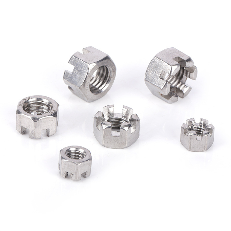 Altzairu Epeleko Hexagonoko Slotted Gaztelu Intxaurretarako, neurri metrikoak normalean M4tik M20ra bitartekoak dira, M10 x 1,5 bezalako hari lodi-pasa ohikoena izanik. Hex zabalera lauen artean giltza-tamaina estandarrak jarraitzen ditu: M10 bat normalean 14 mm edo 17 mm-ko giltza bat egokitzen da zehaztapenen arabera.