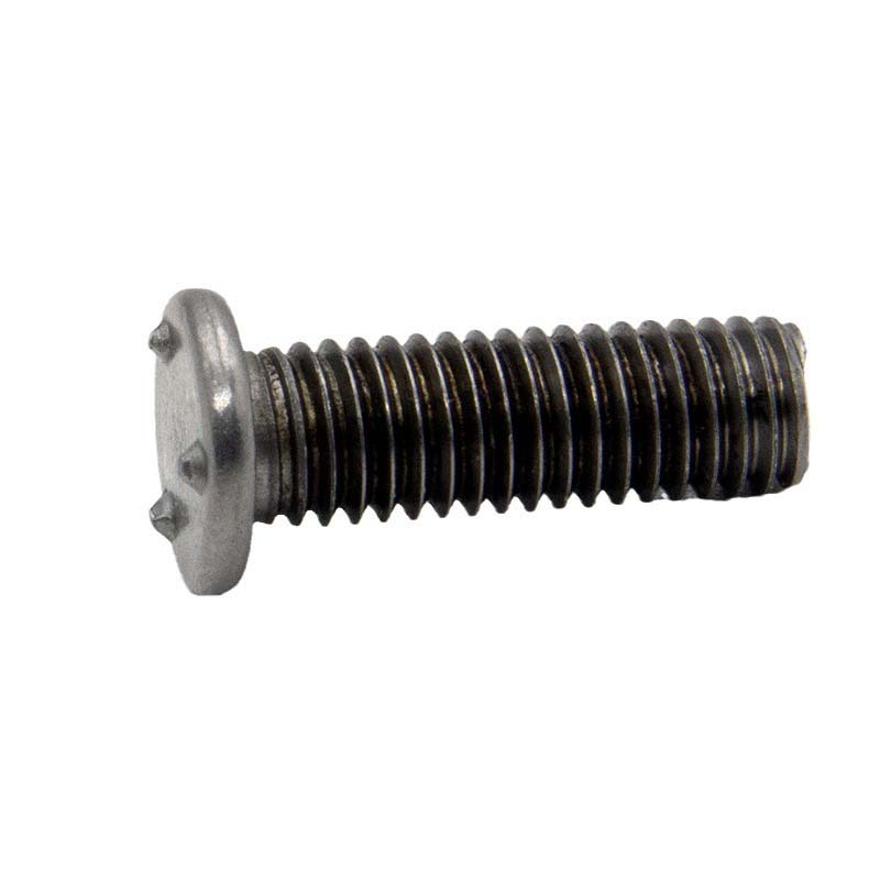 TGoiko proiekzioko soldadura-torlojua torloju batez eta soldadura-plataforma irtena duen buru batez osatuta dago batez ere. Torloju zatiak hari estandarrak ditu, eta goiko aldean soldatutako irtenguneen kopuru eta forma zehatz bat daude, guztiak altuera berekoak.