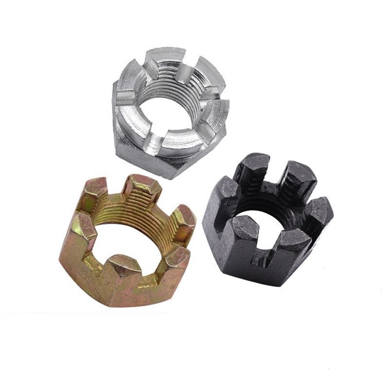 A: Zirrikitu gabeko koroa intxaurraren inguruko gauza nagusia koroan ebakitako zirrikitua da. Intxaurra torlojuan estutu ondoren, zatiketa pin bat (cotter pin) itsasten duzu Bolt-en zurtoinaren aurretik zulatutako zulo baten bidez eta gero zirrikitu horren bidez. Ondoren, pinaren muturrak okertu egiten dituzu. Horrek fisikoki koroaren intxaurrak biraka edo askatzen ditu, nahiz eta bibrazio gogorrak edo karga mugitzen. Horregatik, ondo funtzionatzen du segurtasunarekin lotutako lanpostu garrantzitsuak lortzeko.